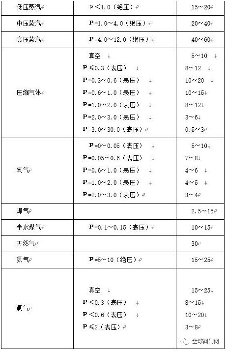 2.各種介質常用流速表