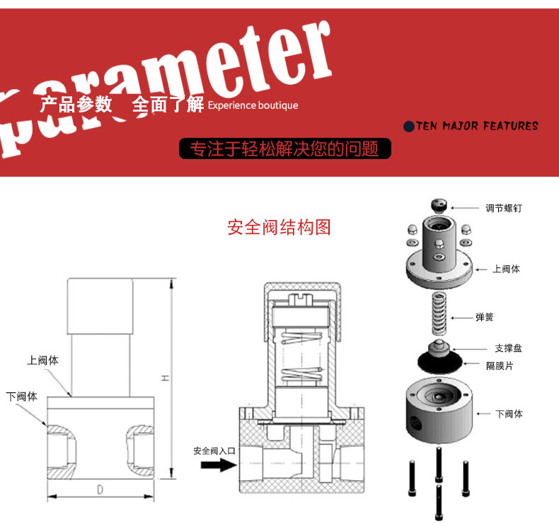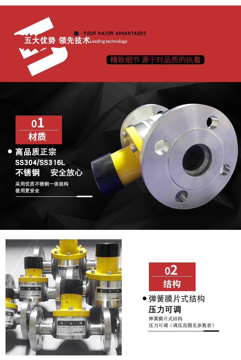 •彈簧膜片式結(jié)構(gòu),壓力可調(diào)(調(diào)壓范圍見(jiàn)參數(shù)表)
