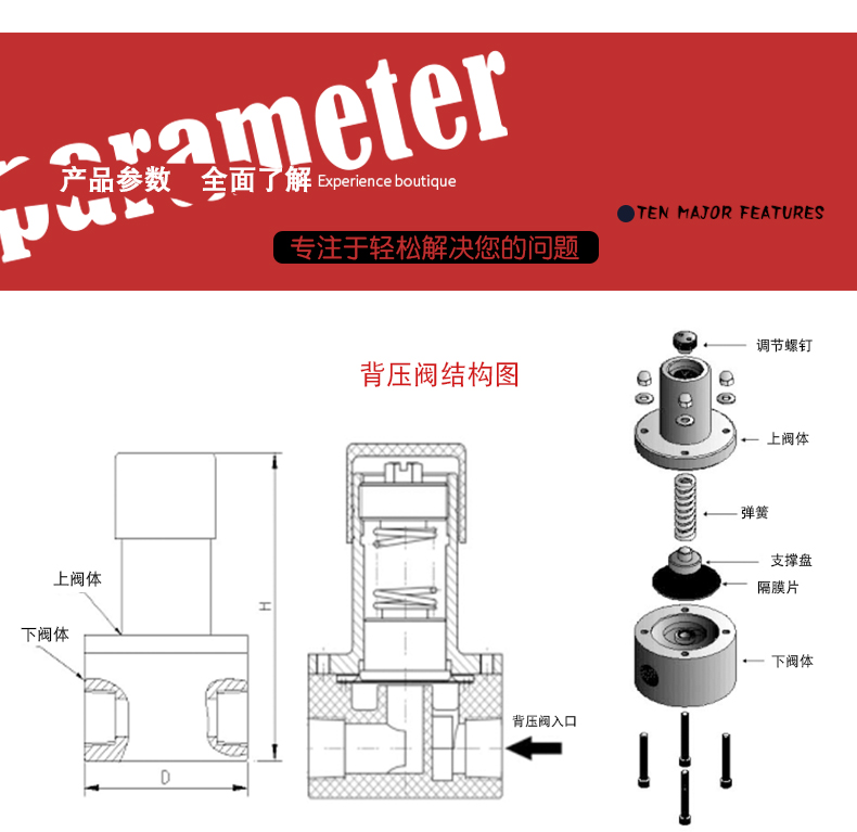 •彈簧膜片式結(jié)構(gòu),壓力可調(diào)(調(diào)壓范圍見(jiàn)參數(shù)表)