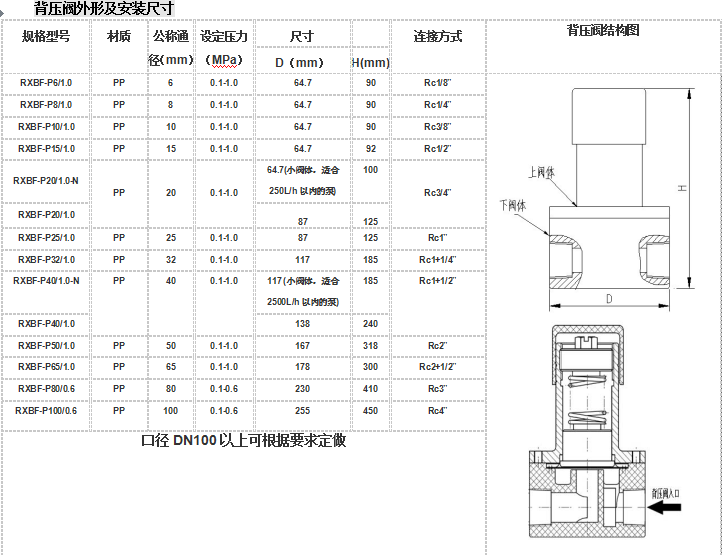 1、 背壓閥的口徑