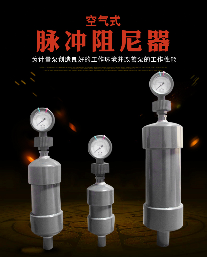 空氣式脈沖阻尼器是一個密封的罐體,依靠液體直接壓縮罐內的空氣起到緩沖的效果。空氣式阻尼器最大的弊端就是里面的空氣會逐漸溶解到輸送介質中,導致可壓縮的空氣越來越少,能起到緩沖的作用也隨之減小,需定期將阻尼器從設備上拆卸后排空里面的介質,保證內部的空間,所以在使用過程中維護稍顯麻煩。但是其價格相對低廉,所以適合一些對緩沖要求不是太高的系統使用。